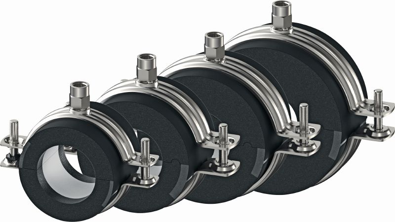 - Fijación de tuberías de agua fría y refrigeración de hasta 219 mm de diámetro