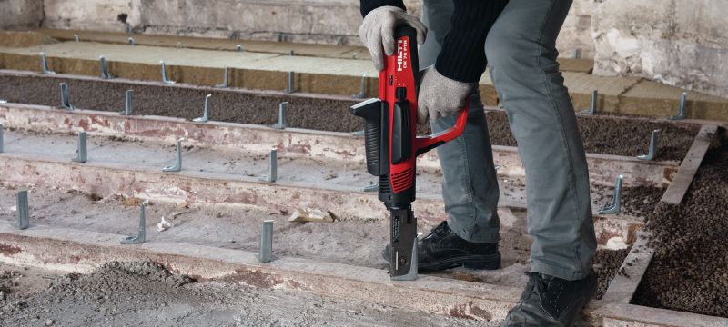 - Método homologado para fijar chapas y perfiles metálicos a subestructuras: la homologación incluye el sistema coordinado de componentes formado por el cartucho 6.8/18M, el clavo X-ENP para chapas y perfiles metálicos y la herramienta de fijación directa con pólvora DX 76