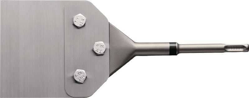 - Cincel rascador de suelo de diseño específico y alto rendimiento: punta afilada y flexible capaz de cortar el material con mayor rapidez; además, el borde biselado impide que se adhiera el material