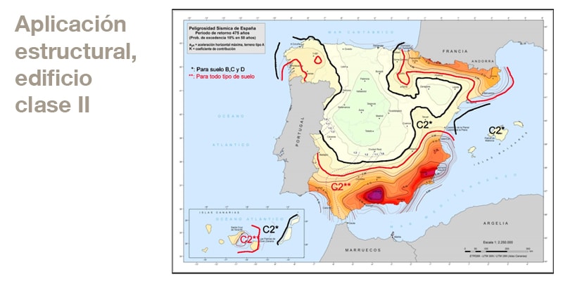 En el caso de las conexiones, esta normativa NCSR-23, indica claramente la necesidad de cálculo frente a sismo. Actualmente, el único documento oficial que permite el cálculo de conexiones, mediante anclajes a posteriori, es EN 1992-4, donde se define la categoría símica de los anclajes (C1 o C2), en función del nivel de importancia de las construcciones, la sismicidad de la zona y el tipo de suelo.