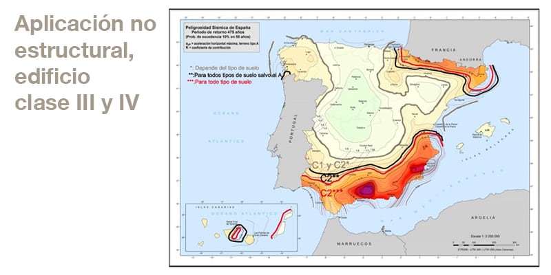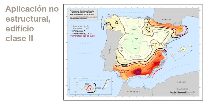 Mapa categoría sísmica de los anclajes según tipo de edificio y aplicación