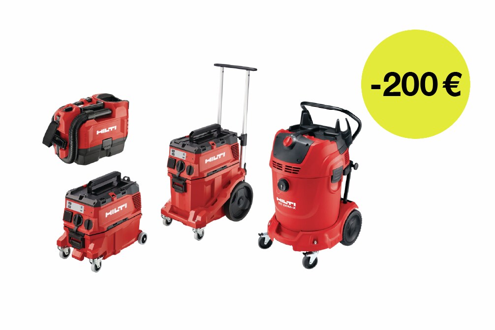 Descubre nuestra gama de aspiradores industriales, con cable y a batería (seco/húmedo), diseñados para la gestión del polvo y la limpieza en obra. Utiliza el código en tu pedido: HOLA20