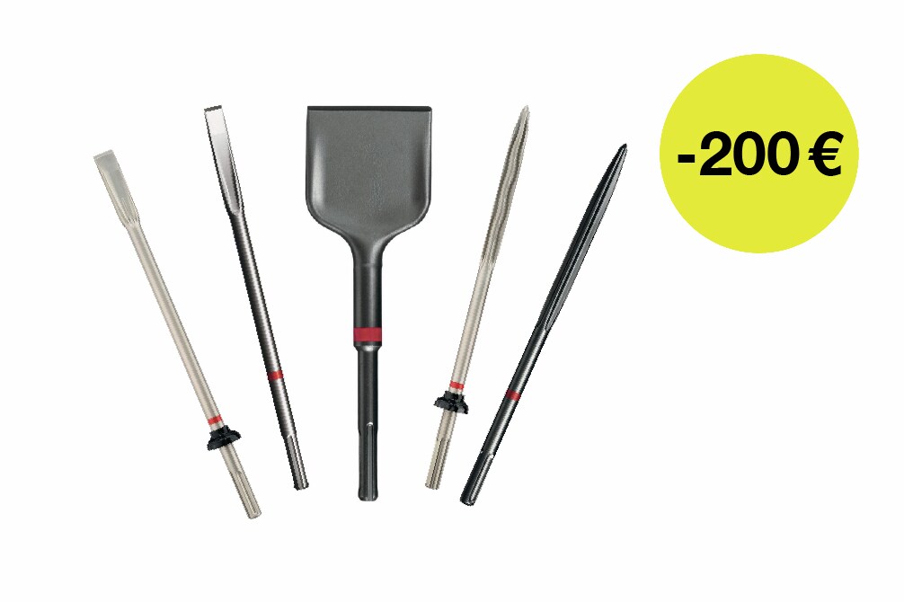Encuentra cinceles SDS / SDS Max / TE-S, punteros para martillo demoledor, rascadores y adaptadores para varillas de puesta a tierra, para aprovechar al máximo tus martillos perforadores y demoledores en trabajos de cincelado y demolición. Utiliza el código en tu pedido: HOLA20