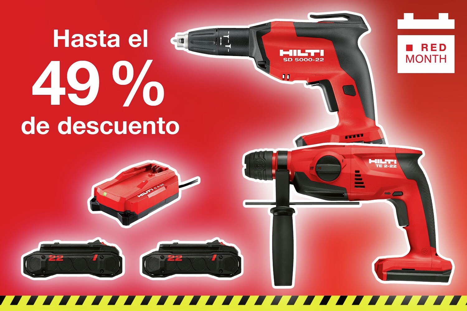 La promoción está limitada a un (1) uso del código promocional por cliente, en (1) solo pedido, no siendo acumulable a otras promociones en www.hilti.es. En caso de duda, contacta con tu Técnico Comercial Hilti.