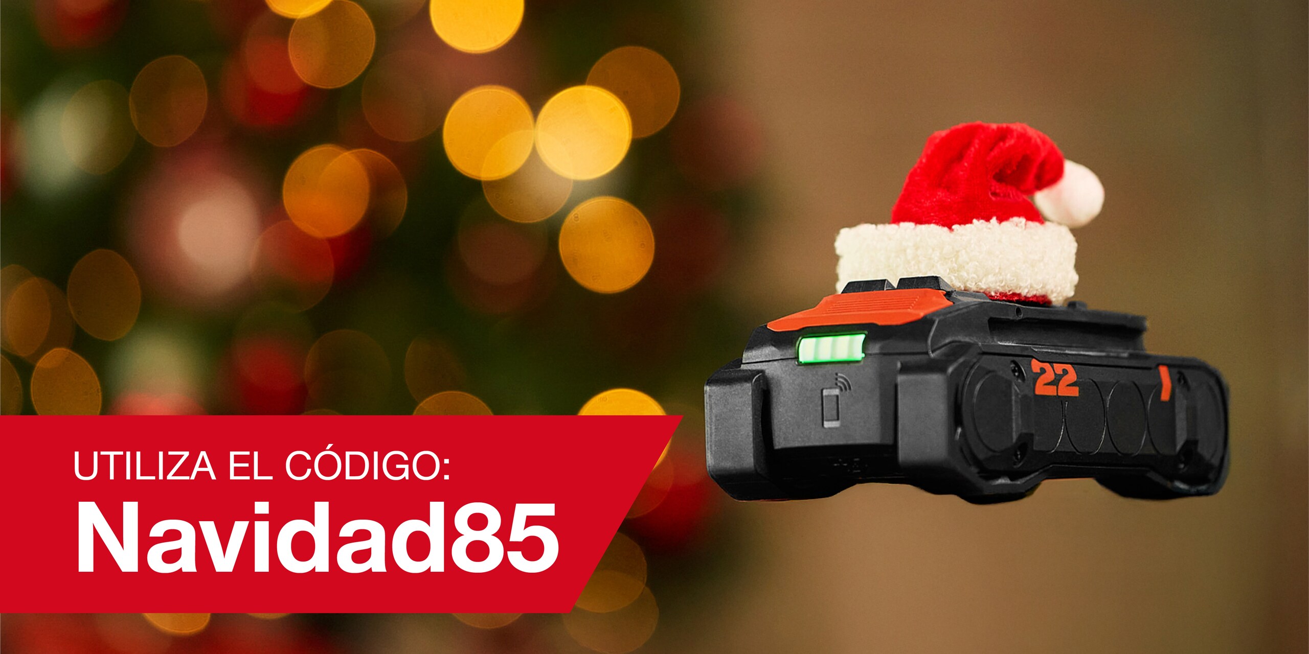 Llévate una versátil batería de Ion-Litio de 22 V con el perfecto equilibrio de peso, potencia y tiempo de funcionamiento para uso con las herramientas a batería Nuron. Batería B 22-85 Li-ion ¡Gratis! Con tu compra de más de 599€ netos (sin incluir gastos de envío e impuestos), recuerda añadir el código NAVIDAD85 en el apartado “código promocional” en el último paso del carrito y se añadirá la batería GRATIS. Se aplicará el descuento de 223,43 € (valor de la Batería ) al precio neto del pedido.