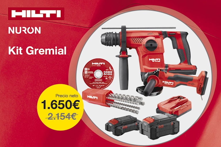 Kit básico compuesto por: Martillo perfor. a batería TE 2-22 + Atorn. tabique seco a batería SD 5000-22 + Cargador C 4-22 + 2 Baterías B 22-55 + Broca TE-CX 6/12 + Broca TE-CX 5/12 + Punta S-B PH2 + Adaptador para punta S-BH + Tope de profundidad.